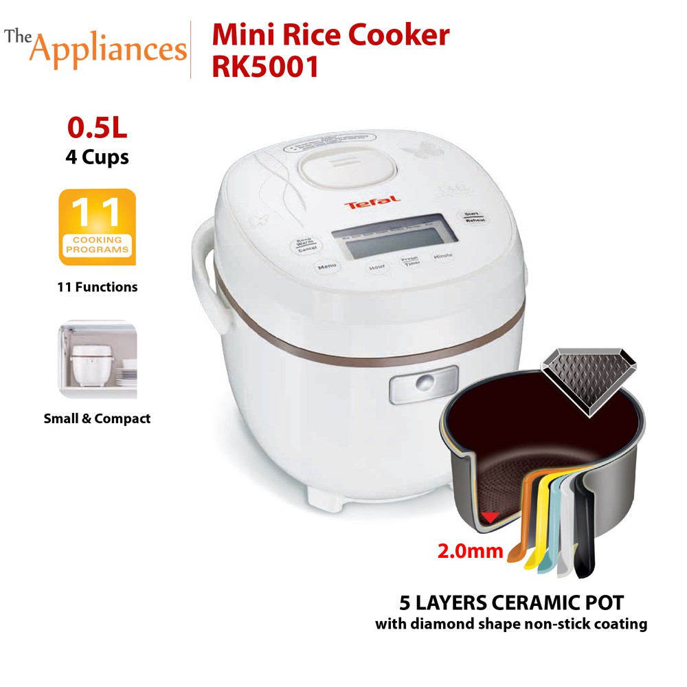 Its 1200 watt power rating ensures that rice is cooked to perfection food is steamed well with the included steamer basket and that soups are boiled nicely in its 1 5 litre pot. You can get great deals on tefal cookers at iprice malaysia for as low as rm 129 00 up to as much as rm 2 778 00. If you want a competent all round rice cooker with ceramic pot then look no further than the tefal ih rk808a. Tefal mini fuzzy logic rice cooker rk5001 rice cooker with 11 preset programs.